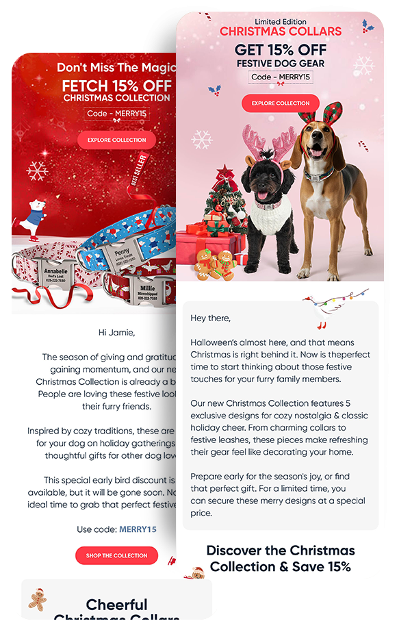 The dog gear brand had low revenue and a weak campaign strategy. For the brand, we planned monthly campaigns around the exciting product range and pet-related themes. This consistently generated $55-65K from emails every month.